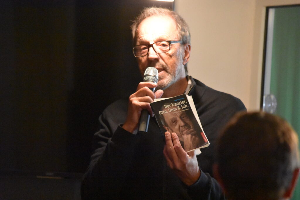 Der Ex SKY Fieldreporter war von Hamburg nach Aurich Walle zur Eröffnung der Tennishalle seines Cousins gekommen, um für Gäste und alte Freunde aus seinem Buch Der Kanzler, Otto, Oma & ich ein paar Zeilen vor zu tragen.